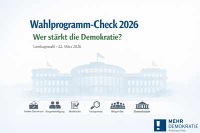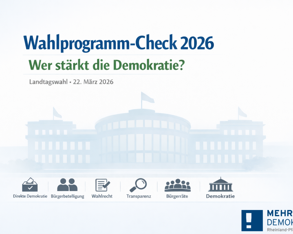 Anlässlich der anstehenden Landtagswahl am 22. März 2026, hat Mehr Demokratie e.V. die Wahlprogramme der 7 Parteien, die aktuell die größte Aussicht auf Einzug in den Landtag haben, systematisch analysiert. Wir haben Aussagen in Bezug auf folgende Themenfelder ausgewertet: Direkte Demokratie, Bürgerbeteiligung, Wahlrecht, Transparenz, Bürgerräte und Demokratie. Das Ergebnis: Die Grünen räumen diesen Themenfeldern von allen Parteien die höchste Aufmerksamkeit ein. An zweiter Stelle folgt die SPD. Die Linke fällt in unserer Auswertung auf Platz 3, gefolgt von FDP auf Platz 4 und Freien Wählern auf Platz 5. Die CDU (Platz 6) und AfD (Platz 7) schlagen wenige Verbesserungen der Partizipationsmöglichkeiten vor.
